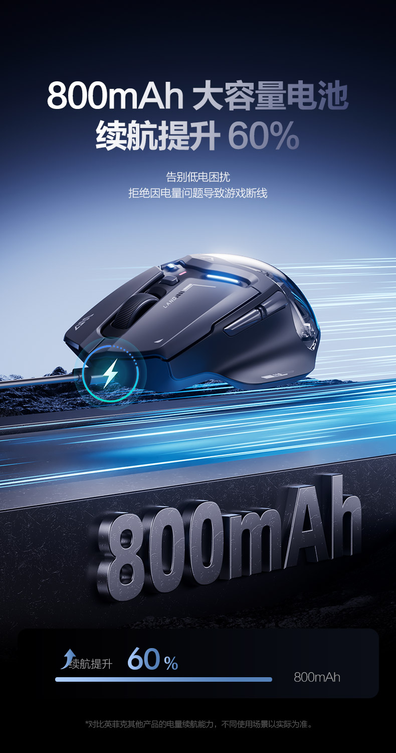 800mAh大容量电池